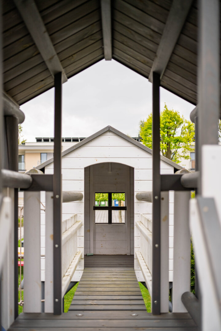 Całoroczne, dwupoziomowe domki apartamentowe MEWA o powierzchni 52 m² pomieszczą komfortowo do 6 osób. Każdy domek ma dwie oddzielne sypialnie, salon z aneksem kuchennym, łazienkę, schowek oraz taras z częścią wypoczynkową.