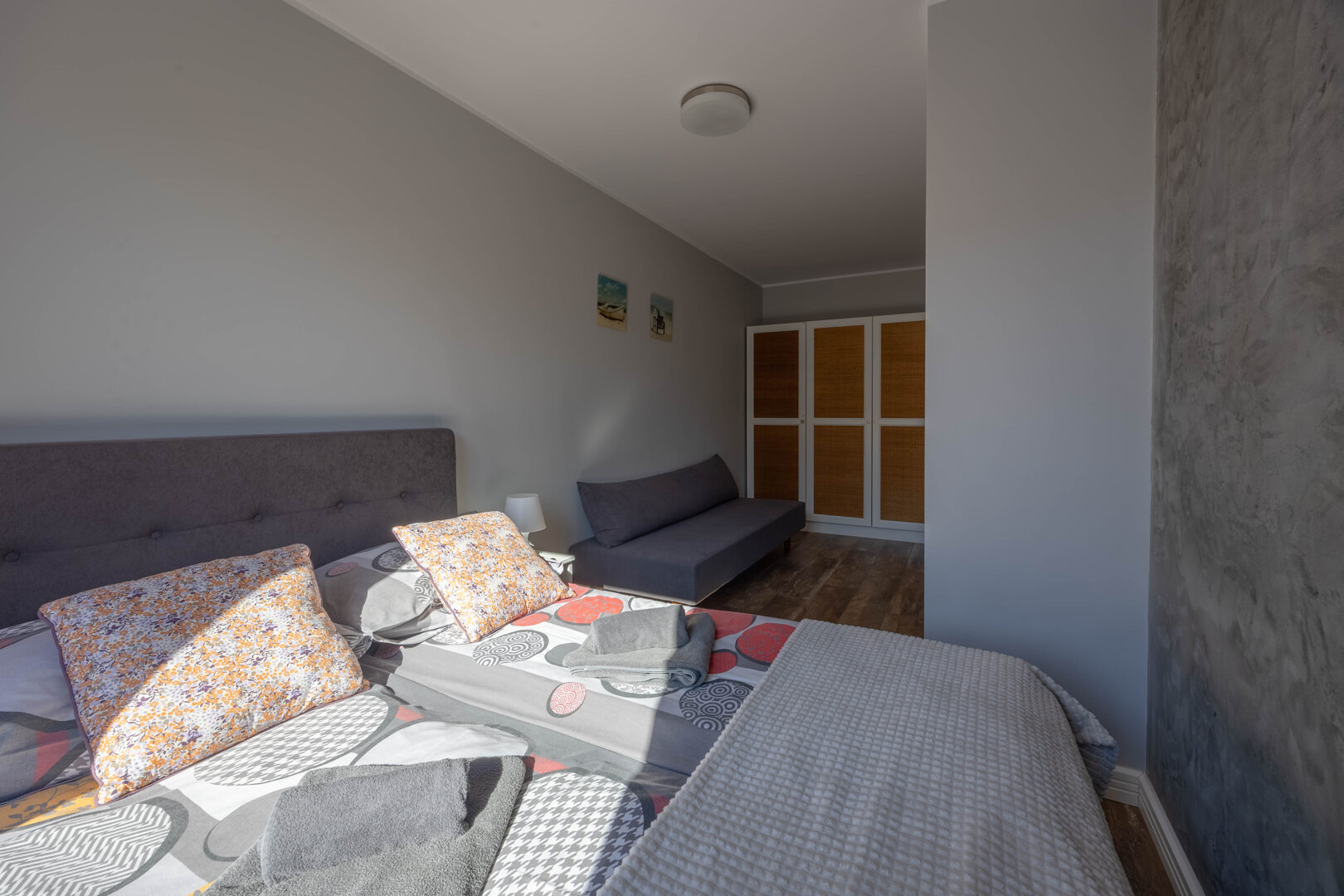 Liczba łóżek: 1 duże łóżko podwójne, 1 łóżko podwójne (Double) lub 2 łóżka pojedyńcze (Twin) - do decyzji gościa, 1 sofa rozkładana (Sofa Bed)