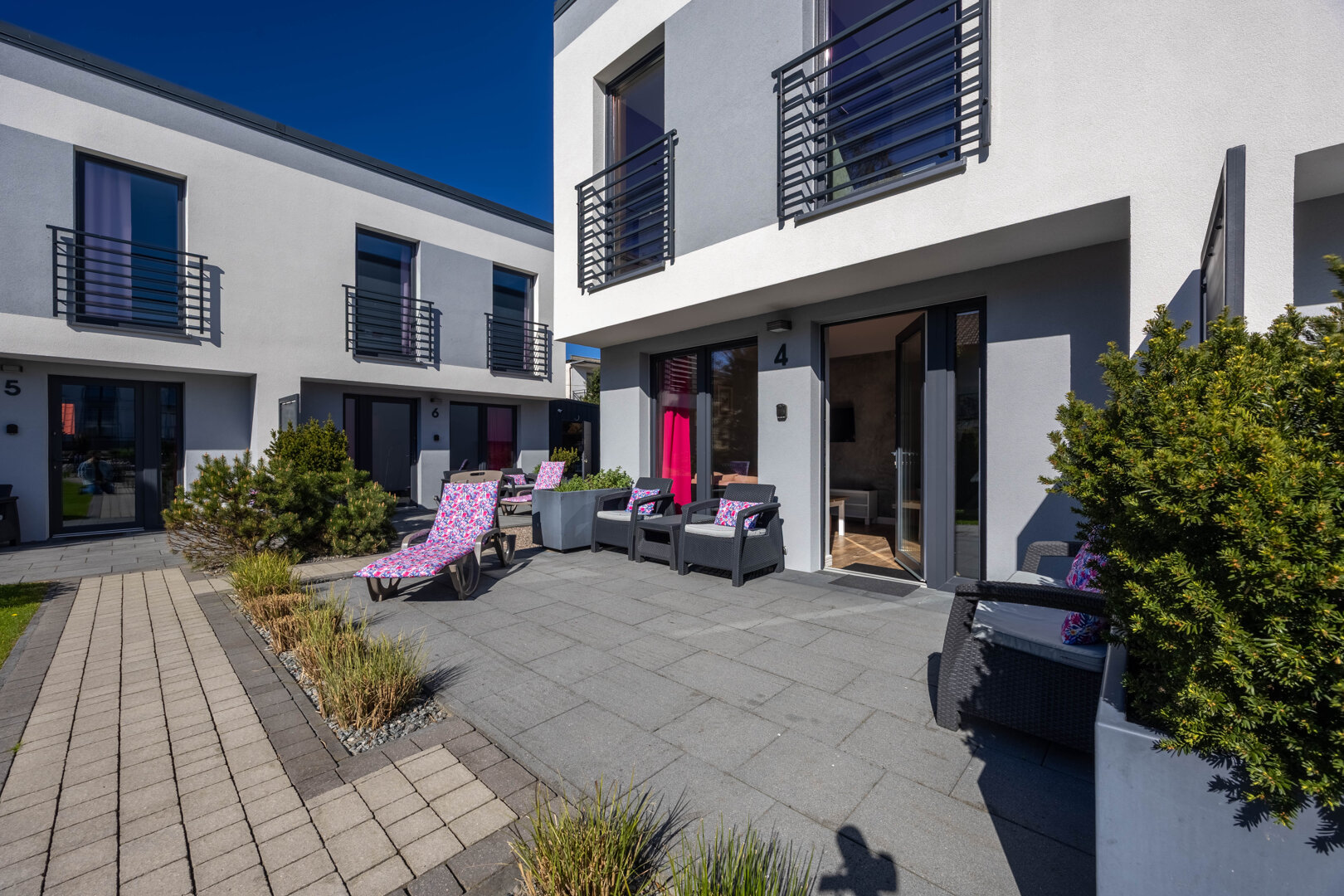 Całoroczny, dwupoziomowy domek apartamentowy nr 6 w kompleksie MEWA o powierzchni 52 m² ugości komfortowo do 6 osób. Domek posiada dwie oddzielne sypialnie, salon z aneksem kuchennym, łazienkę, schowek oraz taras z częścią wypoczynkową.